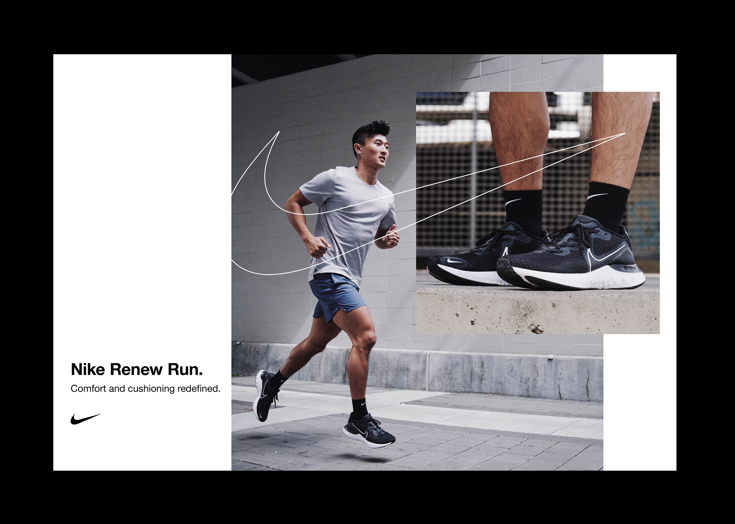 Developed art direction and designed layouts for Nike Run Core Holiday 2019. These layouts included Women and Men’s products and involved the Air Zoom Winflo Shield and Renew Run SKUs. Layouts were intended to be distributed to a wide variety of retailers and had to account for various crop sizes and guidelines. Layouts were also used digitally.